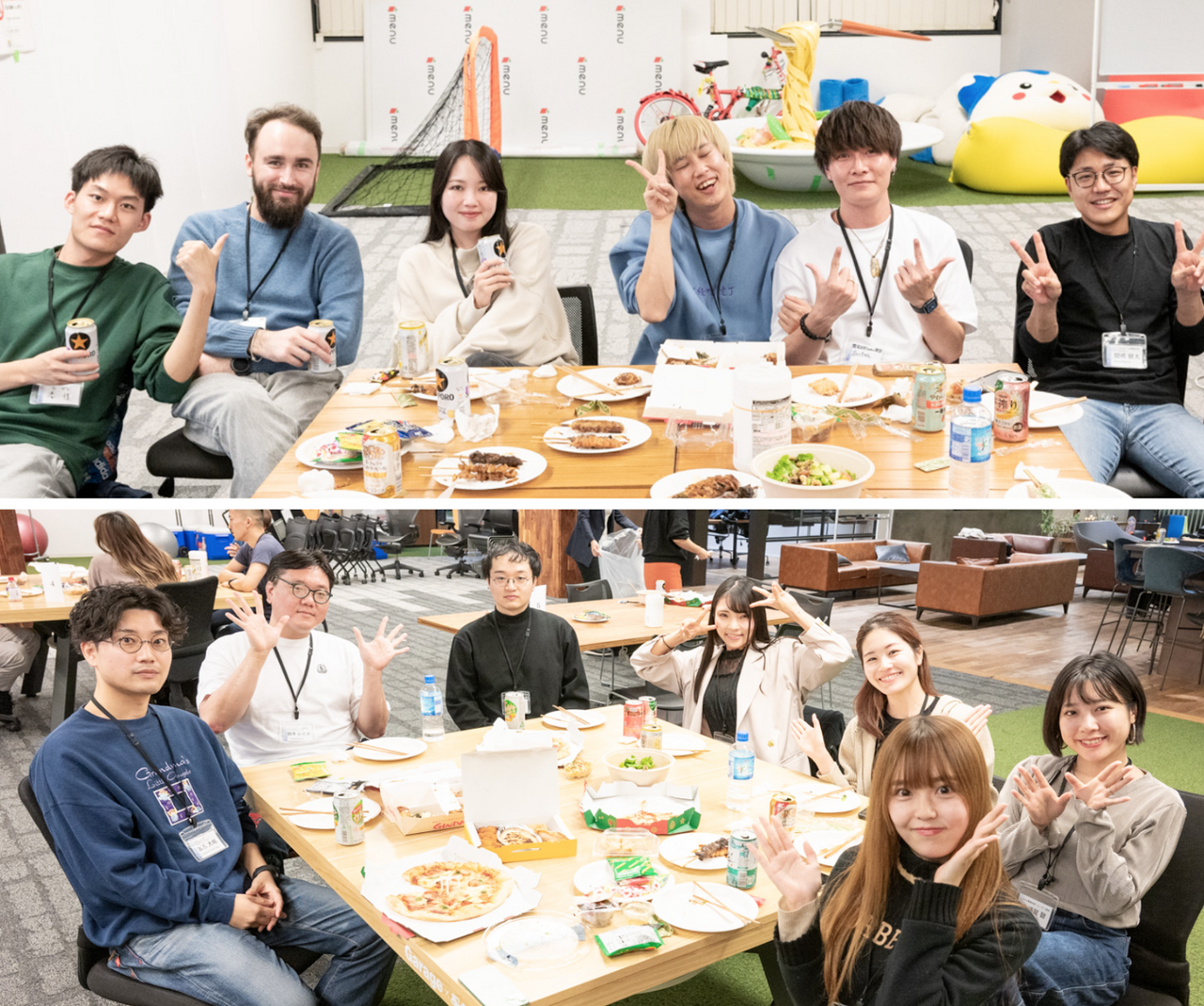 複数チームに分かれて、デリバリーアプリ『menu』で頼んだ食事を囲みながら交流を深めていきます。同世代ということもあり、比較的打ち解けるまでのタイミングも早く、徐々に会場の雰囲気も温まりました。