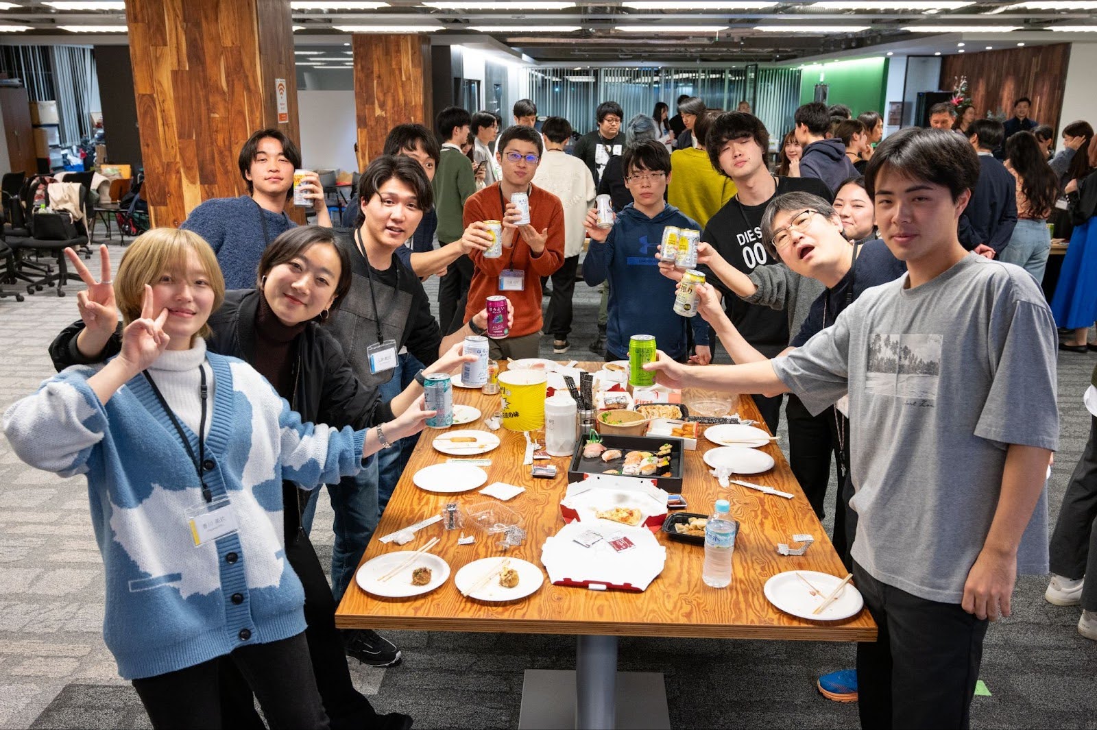 研修期間中、親睦を更に深める目的で自社サービス『menu』で注文した食事を囲みながら、ウェルカムディナーを開催しました。