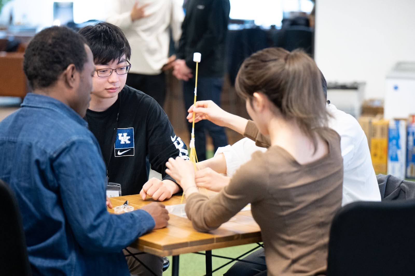 The first is the "Marshmallow Challenge." This was a team-building exercise where teams of four used spaghetti, marshmallows, and limited resources to build the tallest possible tower. Through trial and error, teams strategized and cooperated to construct their towers, learning about working together towards a common goal, mirroring essential aspects of real-world project development. The unofficial world record stands at 99cm, and the highest record during this training was 80cm—just a bit more to go!